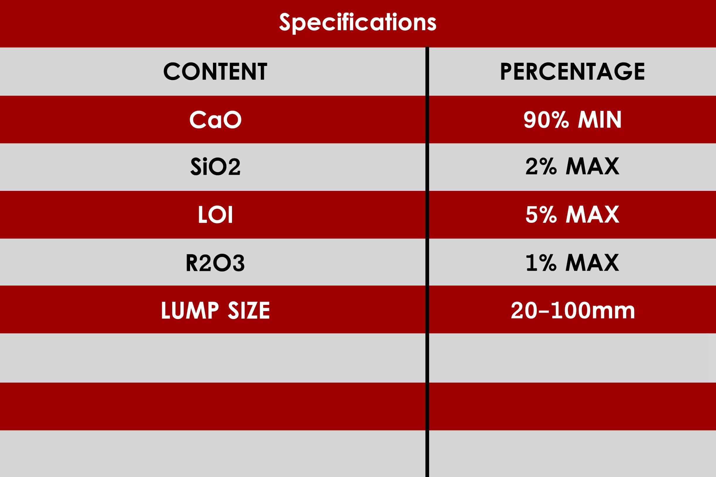 - Calcium Oxide (Quicklime) used in the manufacturing of cement, paper, and high-grade steel.